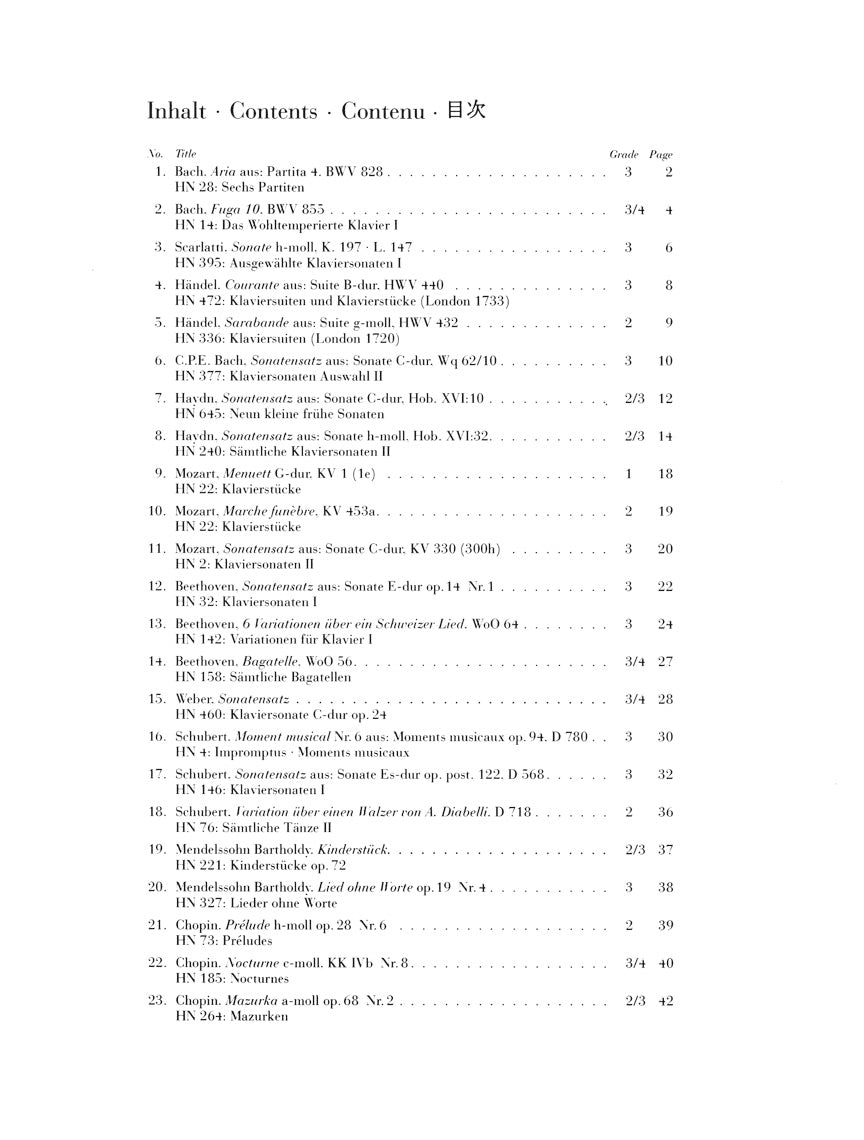 本書は、J.S.バッハからクロード・ドビュッシーに至るまでのピアノ音楽の名作を厳選し、ヘンレ原典版で提供するピアノ名曲アルバムです。ジュビリー・アルバムに続く人気企画で、ピアノ初学者から上級者まで幅広く活用できます。作品ごとに難易度が明示されており、各曲の背景や作曲者についても多言語で簡潔に紹介。演奏にも学習にも最適な一冊です。