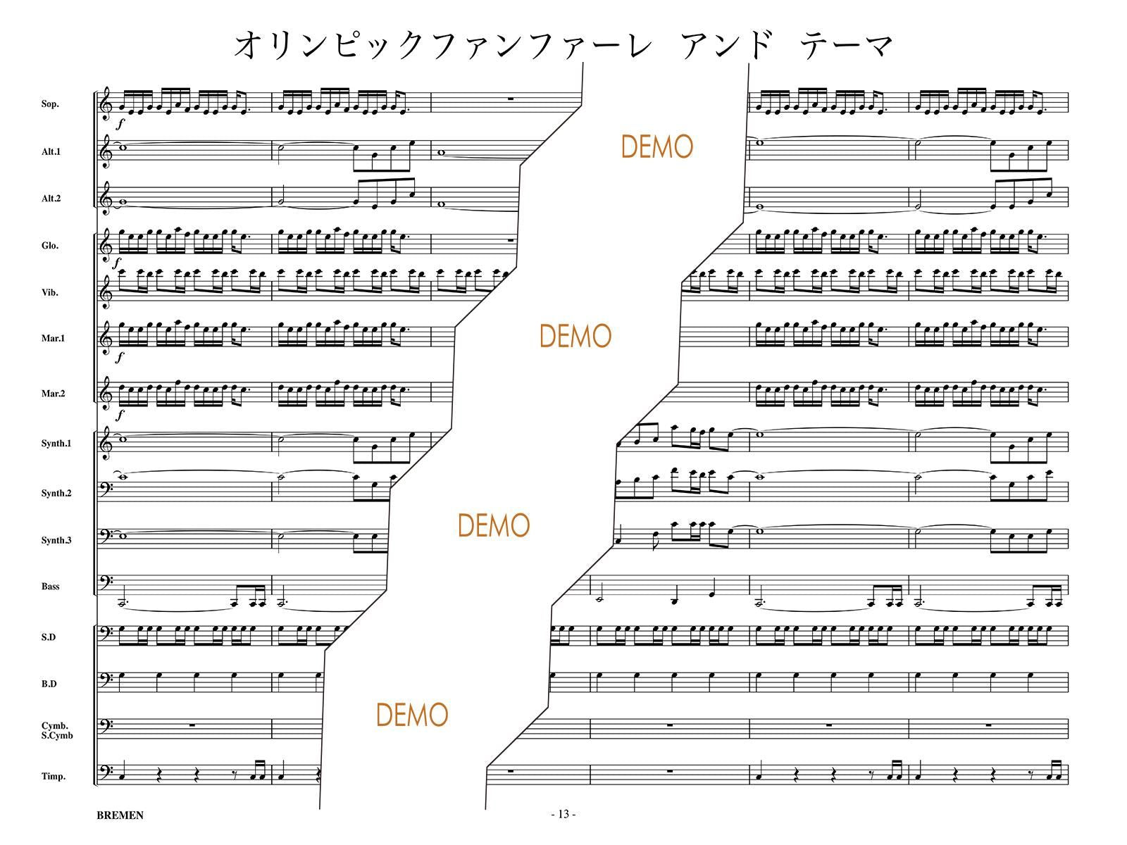 主な使用楽器:鍵盤ハーモニカ、グロッケン(鉄琴)、ビブラフォーン(鉄琴)、マリンバ(木琴)、シンセサイザー(電子オルガン)、ベース(低音楽器)、スネアドラム(小太鼓)、バスドラム(大太鼓)、パーカッション、ティンパニー等