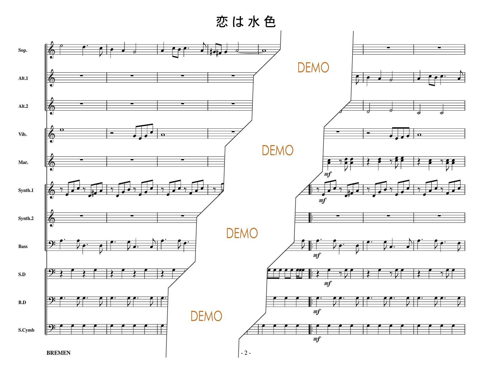 主な使用楽器:鍵盤ハーモニカ、グロッケン(鉄琴)、ビブラフォーン(鉄琴)、マリンバ(木琴)、シンセサイザー(電子オルガン)、ベース(低音楽器)、スネアドラム(小太鼓)、バスドラム(大太鼓)、パーカッション、ティンパニー等
