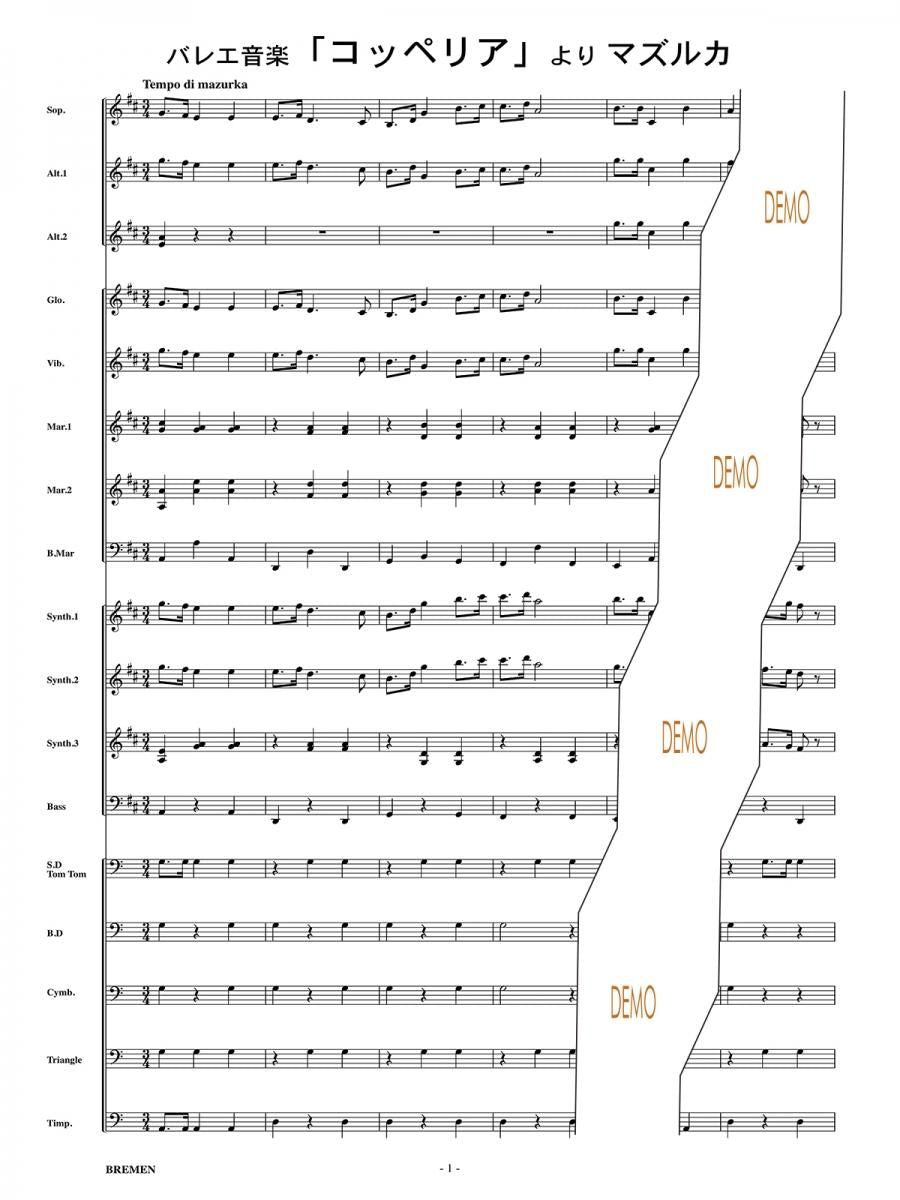 主な使用楽器:鍵盤ハーモニカ、グロッケン(鉄琴)、ビブラフォーン(鉄琴)、マリンバ(木琴)、シンセサイザー(電子オルガン)、ベース(低音楽器)、スネアドラム(小太鼓)、バスドラム(大太鼓)、パーカッション、ティンパニー等